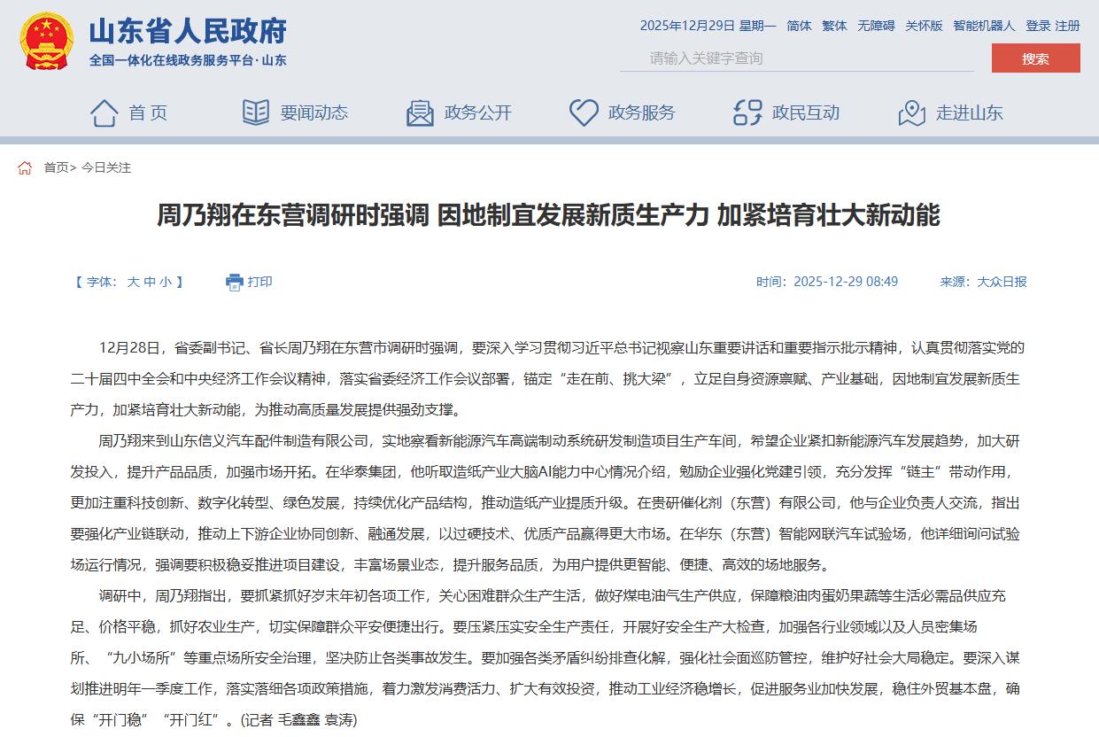周乃翔在东营调研时强调 因地制宜发展新质生产力 加紧培育壮大新动能