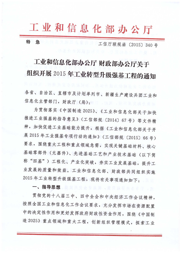 当前位置:首页 > 工业和信息化部办公厅 财政部办公厅关于租住开展2015年工业转型升级强基工程的通知
