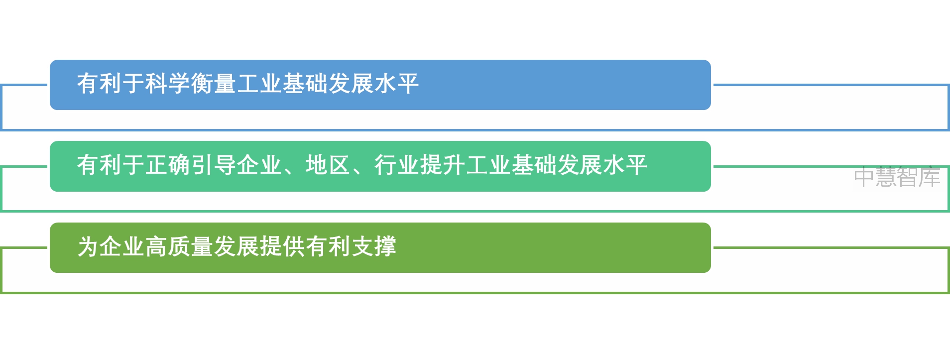 目前,我国是全世界唯一拥有联合国产业分类中拥有全部41个工业大类、207个工业中类、666个工业小类的国家。但部分核心关键的基础零部件、材料、软件等对外依存度过大,产业链安全可控问题突出,严重制约着我国工业向价值链中高端迈进、制约着我国走向工业强国的步伐。在即将全面建成小康社会、实现第一个百年奋斗目标、向第二个百年奋斗目标迈进之时,通过工业基础指数研究工作,“摸清家底”、“知己知彼”,科学、系统地评价工业基础的发展水平,为“十四五”产业基础发展规划提供参考和借鉴,推进产业基础高级化和产业链现代化,推动形成以国内大循环为主体、国内国际双循环相互促进的新发展格局。