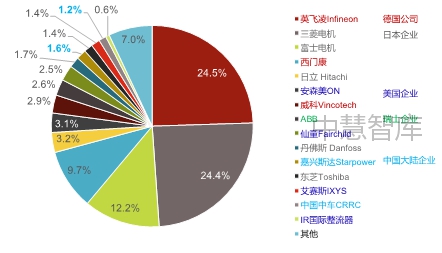 全球市场:2015-2017年全球市场规模35、36、41亿美元,前十供应商有德国Infineon,日本三菱电机、富士电机,德国Semikron,日本日立,美国安森美,德国Vincotech,瑞士ABB,美国Fairchild,日本Danfoss,TOP市场份额超过85%。其中德国的Infineon、Semikron、Vincotech占37%。在全球市场中,2017年中国大陆企业在IGBT市场中份额不到3%。