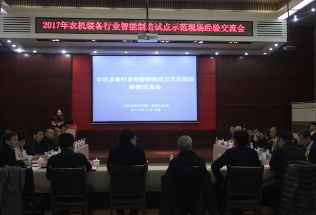 2017年11月16日,为贯彻落实《农机装备发展行动方案(2016-2025)》,加快推进智能制造在农机装备行业的推广和应用,工业和信息化部装备工业司在洛阳市组织召开了农机装备行业智能制造试点示范现场经验交流会。农机装备生产企业、研究院所和地方工信主管部门代表参加了会议。河南省工业和信息化委员会、洛阳市人民政府等领导出席会议并讲话。