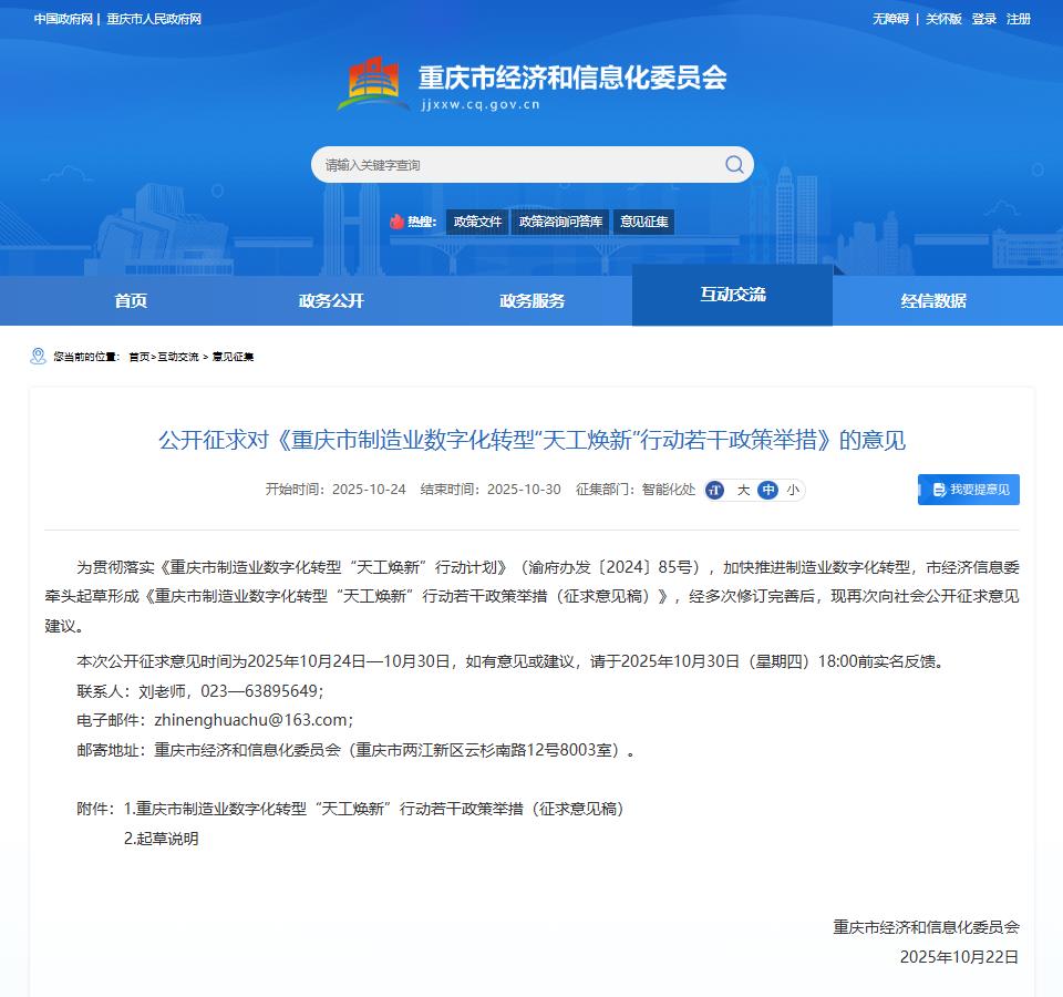 最高奖补1000万元!推动制造业数字化转型,重庆拟出台18条惠企政策