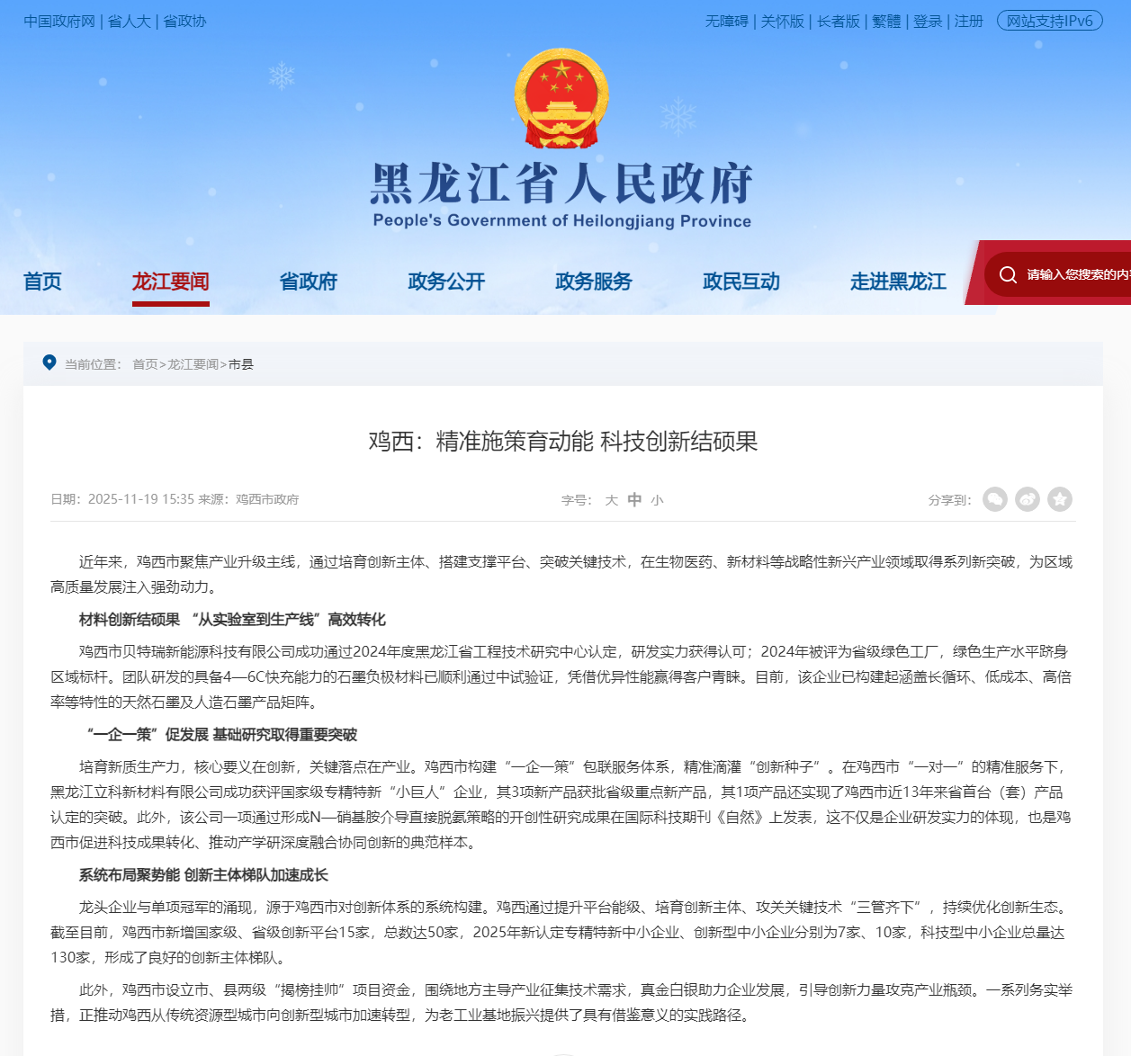 鸡西:精准施策育动能 科技创新结硕果