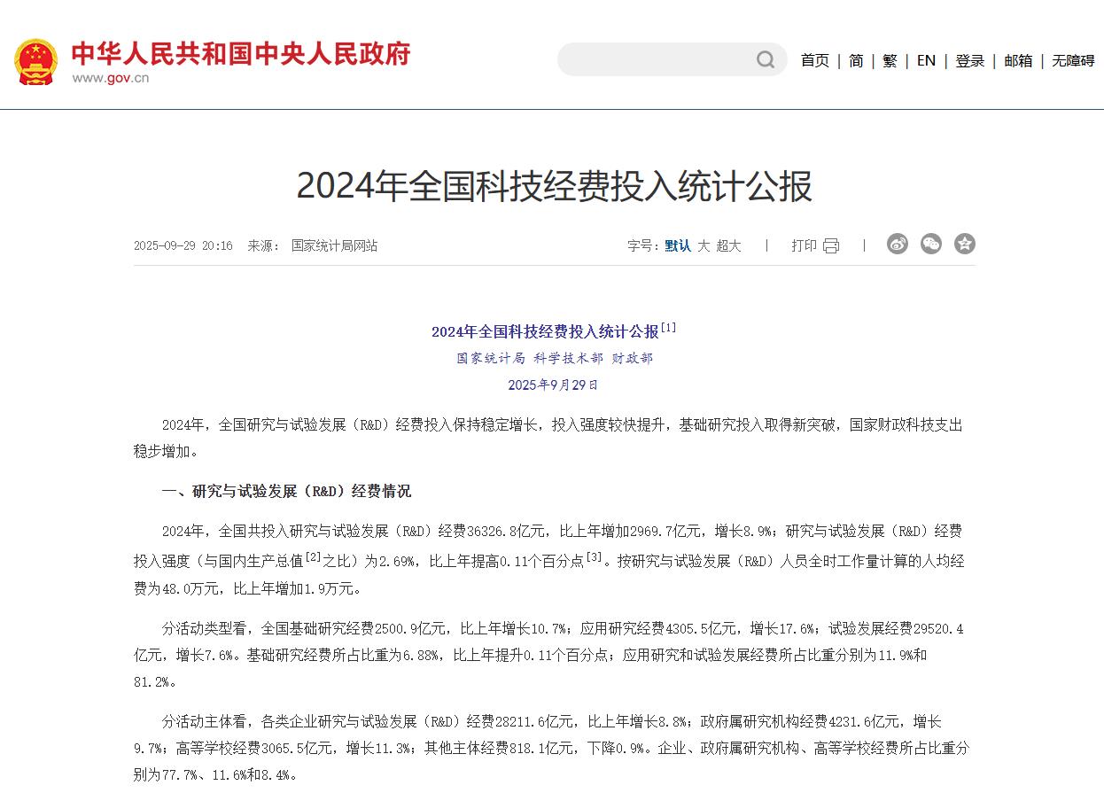 增长8.9%!2024年我国研发经费突破3.6万亿元