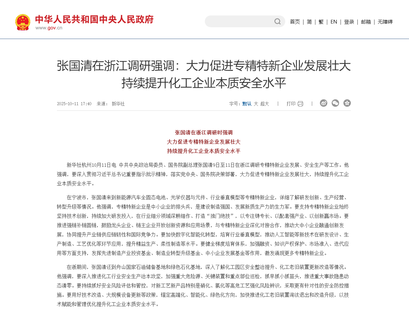 大力促进专精特新企业发展壮大 持续提升化工企业本质安全水平