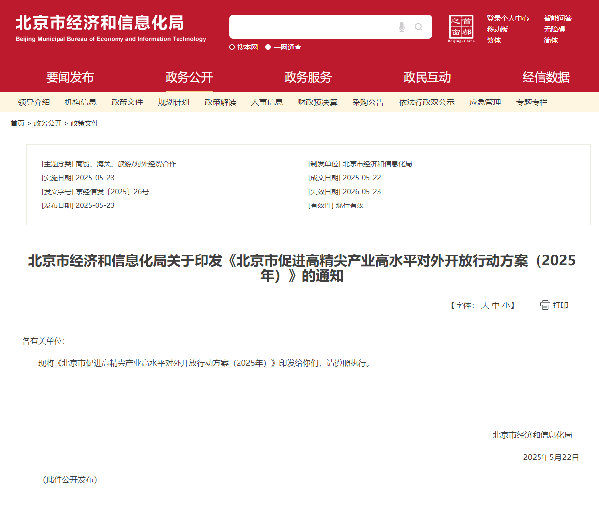 北京市发布24条举措促进高精尖产业对外开放 鼓励外资企业融入京产业创新生态